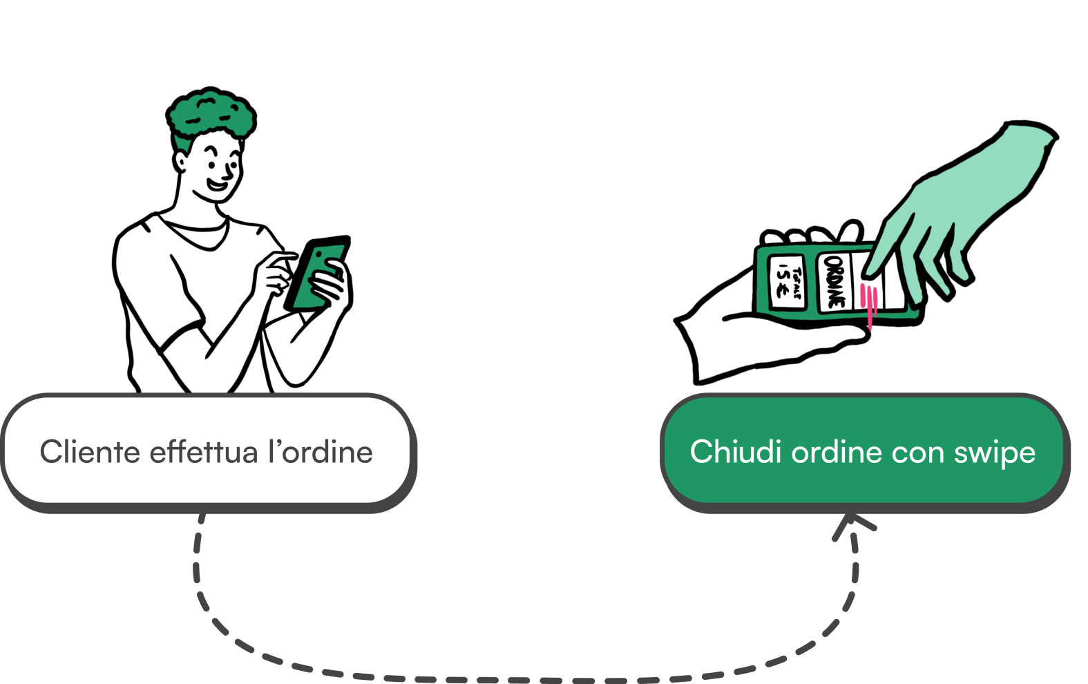 I clienti potranno comodamente scegliere i loro prodotti preferiti dal menù, aggiungerli al carrello e pagare con un semplice click, tutto tramite l’app e senza la necessità di estenuanti code per ritirare scontrini, drink-card o token di plastica. Nel momento in cui vorranno ritirare i prodotti che hanno ordinato, potranno recarsi al banco e mostrare la schermata dell’ordine al barman, il quale provvederà a consegnare loro i prodotti acquistati e a chiudere l’ordine con uno swipe direttamente in-app.